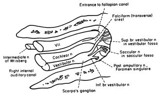 | Рисунок 8 Правый внутренний слуховой проход и его содержимое |
