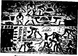 Египетские плавильщики золота (сверху) и изготовители глинобитных кирпичей (снизу) (фреска из гробницы Рехмира, Фивы, XV в. до н. э.)