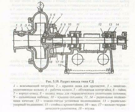 Насосы типа СД - горизонтальные (рис. 5.18), СДВ - вертикальные (рис. 5.19).