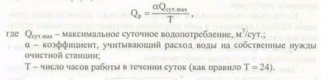 Насосные станции первого подъема, подающие воду на очистные сооружения, работают равномерно в течении суток. При этом расчетную часовую подачу насосной станции в сутки наибольшего водопотребления определяют по формуле