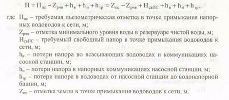Требуемый напор насосов второго подъема в определяется по формуле: