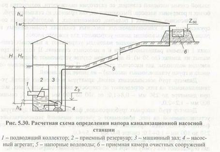 Канализационные насосные станции. Напор, м, насосов (рис. 5.30) определяют по формуле:
