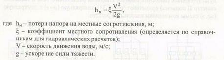 Местные сопротивления при назначении фасонных частей и запорно -регулирующей арматуры определяют по формуле: