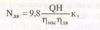Исходными данными для определения требуемой мощности электродвигателя является подача Q, м3/с, и напор Н, м. Подачу и напор принимают по режимной точке рабочей системы «насосы - водоводы -сеть» или «насосы-водоводы». По этой режимной точке определяется КПД насоса (hнас).