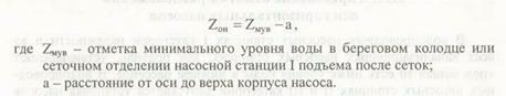 В насосных станциях I подъема (рис. 5.34) отметку оси насоса 2о„ определяют из условия установки корпуса насоса под минимальным уровнем воды в береговом колодце после сеток: