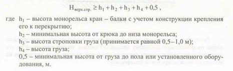 Высота верхнего строения (наземной части насосной станции) в зданиях, оборудованных стандартными грузоподъемными механизмами, определяется (рис. 5.35) по формуле: