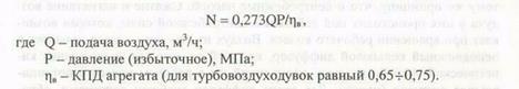 Выбор воздуходувных машин определяется количеством воздуха, потребляемого на станции аэрации и давлением нагнетания воздуха, которое устанавливается при расчете системы воздуховодов. Установленная мощность электродвигателя воздуходувных машин кВт: