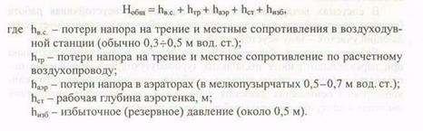 Расчетное давление воздуха Нобщ, необходимое при подаче его в воздухопроводную станцию, равно: