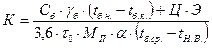где a - поправочный коэффициент на силу ветра и другие условия производства работ (табл. П8.); Сб =1,05кДж/(кг°С) удельная теплоемкость тяжелого конструкционного бетона; gб – плотность тяжелого конструкционного бетона, gб =2400кг/м3; Ц – расход цемента на 1м3 бетонной смеси (принимается в пределах 250...400кг/м3); Э – тепловыделение цемента за время остывания бетона (табл. П7.); tHB – заданная температура наружного воздуха (-20°С).
