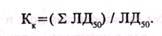 и определяется как отношение суммарной дозы, полученной организмом при неоднократном экспериментальном введении вещества в количестве, равном среднесмертельной дозе (концентрации), т. е.