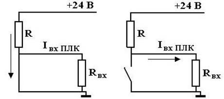 Таким образом, величина сопротивления R может быть выбрана не меньше 120 Ом (иначе сгорит контакт) и не больше 2,4 кОм, чтобы контроллер не потерял способность распознать при вводе уровни сигналов ON и OFF.