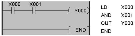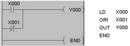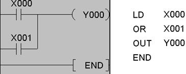 Эта команда применяется для описания фрагмента соединения, при котором выходная цепь Y0 переходит во включенное состояние, если хотя бы один из входных сигналов (X0 или X1) примет значение ON.