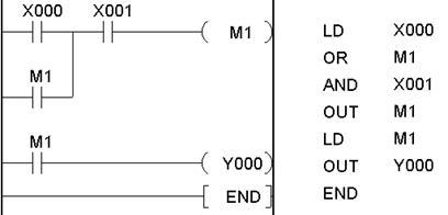 Отметим, что рассмотренную задачу включения нагрузки можно представить иначе. Речь идёт о языке, который называется “ Список Инструкций” (СИ). Поскольку среда программирования MELSEC MEDOC FX / WIN позволяет составлять программу и в одном языке, и в другом, то, чтобы избежать излишних повторений при их описании, одни и те же примеры будут рассмотрены параллельно и записаны в форматах представления обоих языков (РКС и СИ).