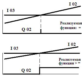 На рис.3.4 показано, как компаратор формирует выходной сигнал, если функцией сравнения задано «равенство» (верхний случай), или «не меньше» (нижний вариант).