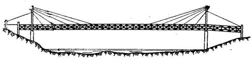 – 1817 г., Англия, пешеходный мост (рис. 1.11) пролетом 33,5 м (из проволочных канатов с металлическим пилоном).