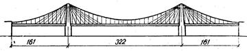 С середины 50-х г.г. на смену вантовым решетчатым фермам стали приходить вантово-балочные мосты современных типов с металлическими, а в дальнейшем и с железобетонными балками жесткости. Первый такой мост был построен в 1956 г., в Швеции через фиорд Штремзунд (Стромзунд), пролет моста 182,6 м, система вант «пучок», мост двухпилонный (рис. 1.16).