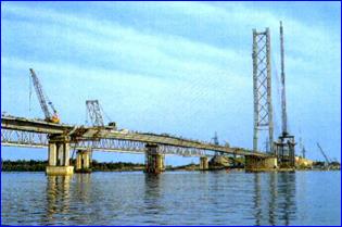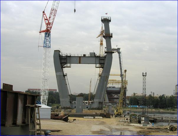 Рис. 1.18. Строительство вантового моста через р. Неву