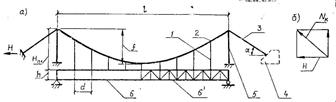 6’ – ферма жесткости; d – панель; f – стрела провисания кабеля; h – высота балки (фермы) жесткости;