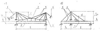 1 – оттяжка; 2 – подвеска; 3 – ванты; 4 – анкерная опора; 5 – пилон; 6 – балка жесткости;