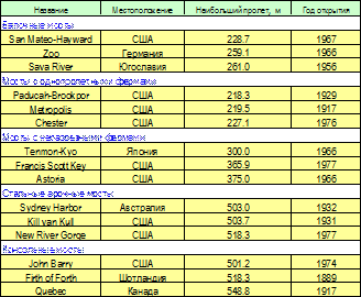 В табл. 3.1, представлены некоторые данные из опыта мостостроения, проиллюстрированы возможности перекрытия пролетов разной длины конструкциями различных систем (см. также рис. 3.1).