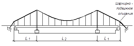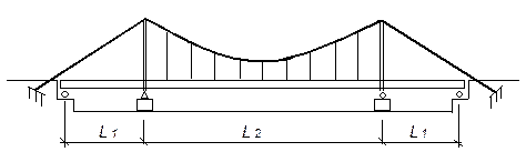 Рис. 8.15. Схема моста с не подвешенными боковыми пролетами