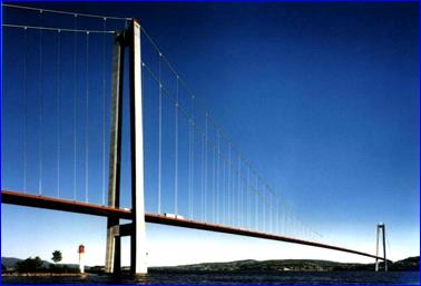 Рис. 8.14. Трехпролетный висячий мост (Швеция)