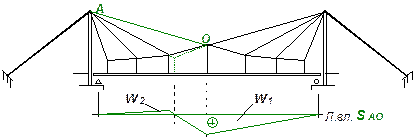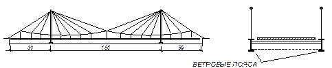 Наличие постоянной нагрузки, распределенной по всему пролету фермы и вызывающей растягивающие усилия во всех вантах, позволяет исключить возможность падения растягивающего усилия в них до нуля и создать необходимый запас по растяжению.