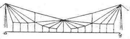 Рассматриваемая система возникла, как результат стремления ослабить недостаток простой радиально-вантовой фермы, уменьшить значительную длину радиальных вант. Как видно из сопоставления рис. 9.14 и 9.7, это достигнуто ценою увеличения высоты пилонов.