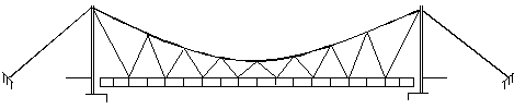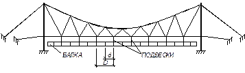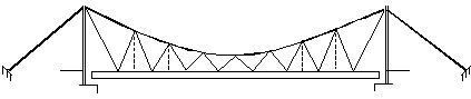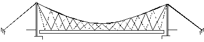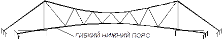 Гибкий нижний пояс, имеющийся в конструкциях мостов показанных на рисунках 11.3 и 11.4 удобен при монтаже и его натяжении, однако при наличии балки жесткости, гибкого нижнего пояса фермы может не быть (см. рис. 11.5).