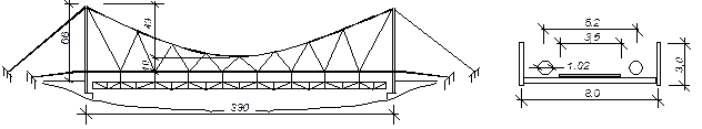 Рис. 11.5. Вантовый мост с решетчатыми фермами и балкой жесткости