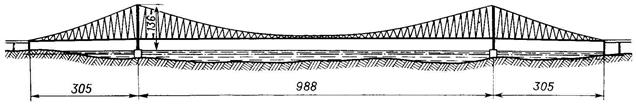 Рис. 11.9. Схема моста через р. Северн (1966 г)