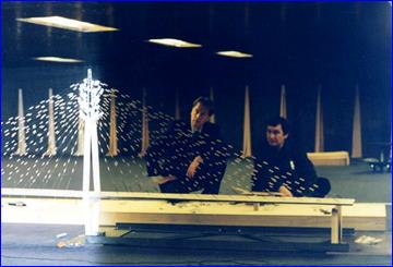 Исследования обычно проводят на моделях секций балки жесткости или всем сооружении. Следует отметить, что для правильного перенесения результатов опытов от модели к натуре, необходимо равенство критериев подобия – сечение модели должно быть геометрически подобно реальной конструкции. Такую модель устанавливают на упругих опорах в аэродинамической трубе, исследуя при различных скоростях движения воздуха и различных углах атаки – основной задачей при этом является определение критической скорости ветра. Скорость потока воздуха для модели принимают такой, чтобы с учетом масштаба она соответствовала максимальной скорости ветра в районе строительства. В процессе динамических испытаний скорость воздуха увеличивается до возникновения катастрофических колебаний.