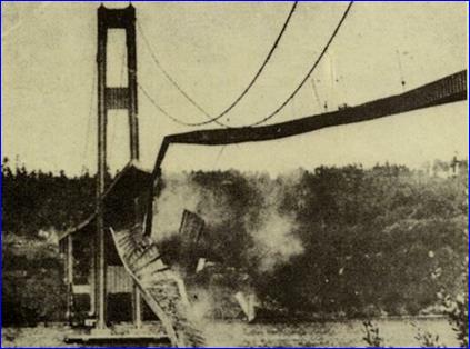 Наиболее известна катастрофа Такомского моста (рис. 13.10) построенного в 1940 г. через пролив Пюджет Саунд и имевшего на тот период третий по величине центральный пролет в мире.