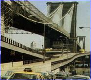 Рис. 1. Общие виды Бруклинского моста, его пилонов, кабелей, вант и въездов