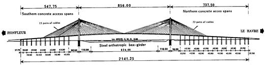 Величина центрального пролета моста на 70% превысила предыдущий для этих систем рекорд (608 м). Немногие сооружения в истории мирового мостостроения могут гордиться таким резким рывком вперед, на который отважились проектировщики и строители моста Нормандия, введя совершенно новую концепцию вантовых мостов.