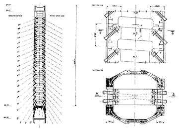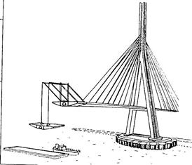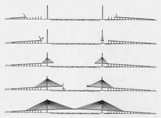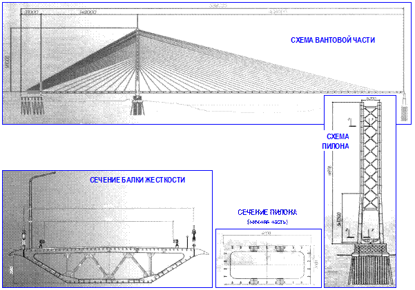 Учитывая весь спектр перечисленных проблем, для главного моста была выбрана многопролетная вантовая конструкция с тремя центральными пролетами по 560 м каждый и двумя боковыми пролетами по 305 м длиной
