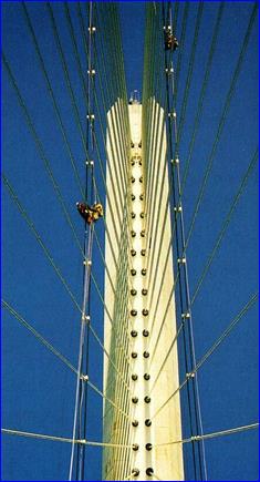 Ко времени завершения строительства (1995 г.) центральный вантовый пролет моста, равный 856 м, был рекордным (позднее рекорд был установлен мостами Tatara в Японии (890 м) и Dongfang в Китае (900 м)).