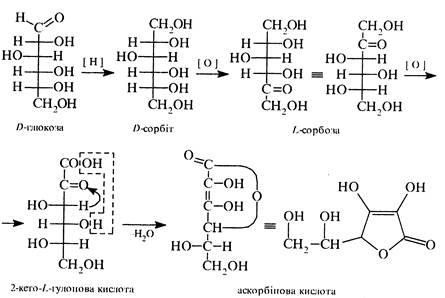 В промисловості аскорбінову кислоту добувають з D -глюкози: