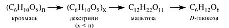 Крохмаль містить приблизно 20% розчинної у воді фракції, яку називають амілозою, і близько 80% нерозчинної фракції, що називається амілопектином. При поступовому кислотному та ферментативному гідролізі амілоза й амілопектин розщеплюються до декстринів (суміш полісахаридів з меншою молекулярною масою), подальший гідроліз яких приводить до мальтози, а потім до D -глюкози: