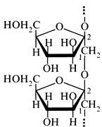 складноцвітих та інших рослин. Молекула інуліну має лінійну будову та складається з залишків β- D -фруктофуранози, сполучених 2,1-глікозидними зв'язками, і закінчується α- D -глюкопіранозним залишком (як у сахарози). Молекулярна маса його звичайно не більша 6000.