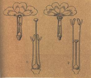 Гетеростилія – різнорівневе розміщення пиляків тичинок і приймочок маточок (гречка, первоцвіт) (рис. 1).