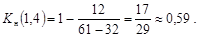 В качестве примера вычислим по формулам (2.22) и (2.23) коэффициент напряженности работы (1,4) для указанного сетевого графика. Так как длина критического пути t кp = 61 (сут.), а максимальный путь, проходящий через работу (1,4), – путь L4 (0-1-4-6-9-10-11) – имеет продолжительность t(L max ) = t(L4) = 49 (сут.). При этом максимальный путь L4 совпадает с критическим путем (см. рис. 17) на отрезке 6 - 9 - 10 - 11 продолжительностью t’ кp = 13 + 6 + 13 = 32 (сут.), то, используя формулу (2.22), найдем