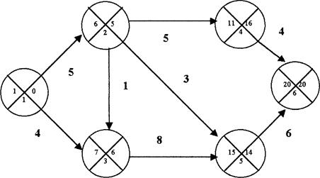 Определим поздние сроки свершения событий сетевой модели, представленной на рис. 16.
