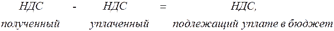 Сумма налога, подлежащая уплате в бюджет определяется как сумма налога, полученная от покупателей при реализации своей продукции уменьшенная на сумму налоговых вычетов.