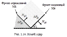 Существуют прямые У. в., в которые вещество втекает по нормали к поверхности, и косые У. в. Последние возникают, напр., при сверхзвуковом движении тел - ракет, спускаемых космич. аппаратов, снарядов и др., когда перед телом движется У. в. Геометрия У. в. зависит от формы тела и от др. параметров. Поэтому в системе координат, где У. в. покоится, газ втекает в каждый элемент её поверхности под своим углом. Если этот угол не прямой, то элемент поверхности представляет собой косую У. в. На косой У. в. претерпевает разрыв нормальная составляющая скорости вещества, но тангенциальная составляющая непрерывна. Следовательно, на косой У. в. линии тока преломляются. Путём перехода к новой системе координат, движущейся параллельно поверхности разрыва, косую у.в. всегда можно свести к прямой.
