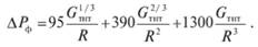 Для определения зависимости избыточного давления на фронте ударной волны ΔPф (кПа) от расстояния R (м) до эпицентра взрыва конденсированного взрывчатого вещества наиболее часто используют формулу М.А. Садовского для наземного взрыва при условии