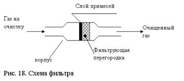 Для тонкой очистки газов от частиц и капельной жидкости применяют различные фильтры. Процесс фильтрования состоит в задержании частиц примесей на пористых перегородках при движении через них дисперсных сред. В качестве фильтрующего слоя используют ткани, специальную бумагу, кокс и др.