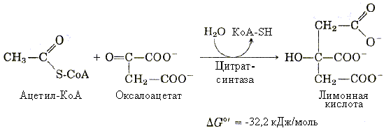 Данная реакция практически необратима, поскольку при этом распадается богатая энергией тиоэфирная связь ацетил~S-КоА.