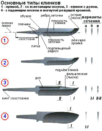 Основные типы клинков, их детали и части, о которых пойдет речь, изображены на рисунках 1-4.