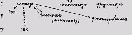Включает в себя катаболизм (расщепление углеводов пищи и выделение энергии) и анаболизм (синтез углеводов с затратой энергии). Катаболизм УВ включает в себя 3 стадии:
